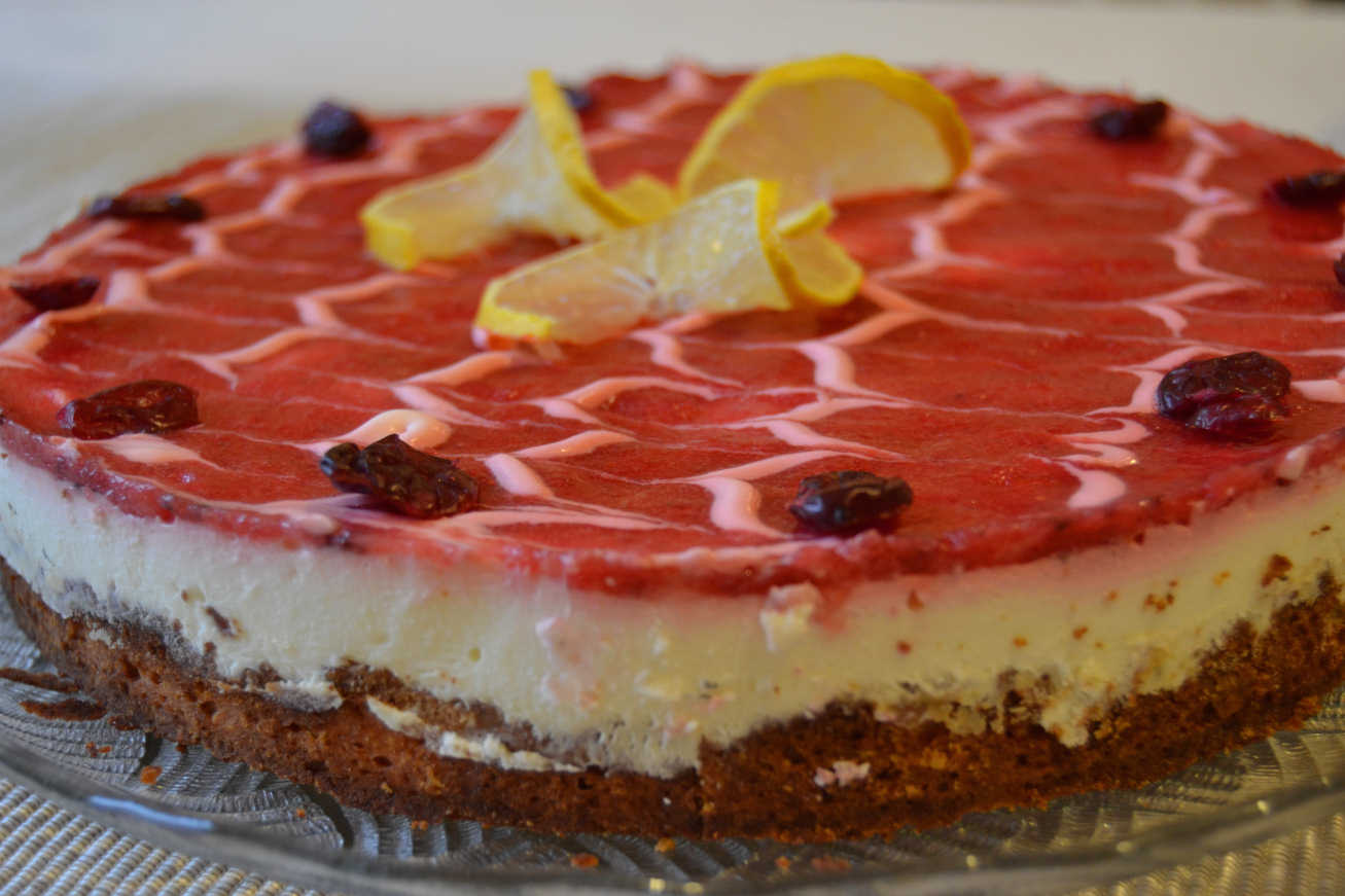 2. Valmista sitruunatäyte. Laita liivatteet kylmään veteen, kunnes ne pehmenevät. Notkista tuorejuusto kulhossa ja lisää sekaan tomusokeri, huolellisesti pestyn sitruunan raastettu kuori ja mehu. Vatkaa vispikerma vaahdoksi ja lisää täytteeseen. Tarkista maku ja sokerin määrä. Kuumenna tilkka sitruunamehua ja liota liivatteet siiheen. Sekoita liivateseos ohuena nauhan täytteen joukkoon. Kaada täyte pohjan päälle ja tasoita. Nosta kylmään.